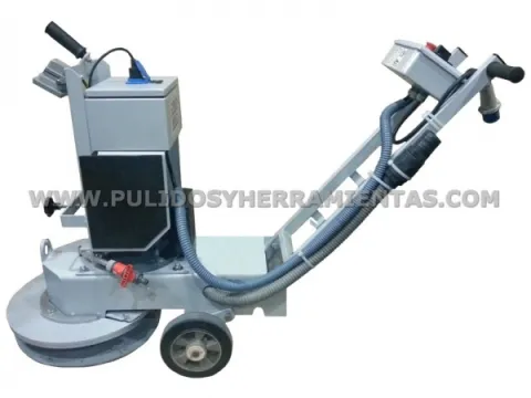 Pulidora, rectificadora and tuner of pavings of concrete-fratasados and resins, with taking of aspiration to work in dry and deposit of optional water to work in wet, works from backwards as in a pulidora satellite or from in front like a pulidora traditional, contains a drawer of weigh in the leading and rear part to augment or diminish the pressure of the abrasive. Available in version monofásica and version trifásica.
